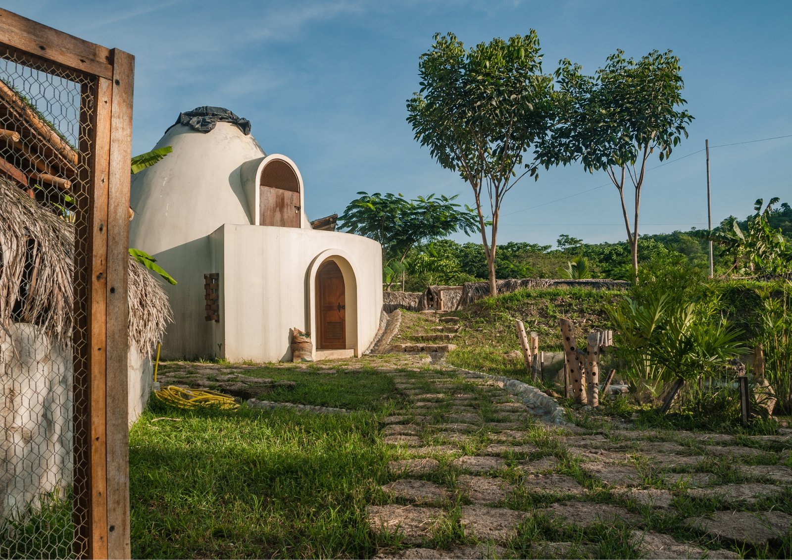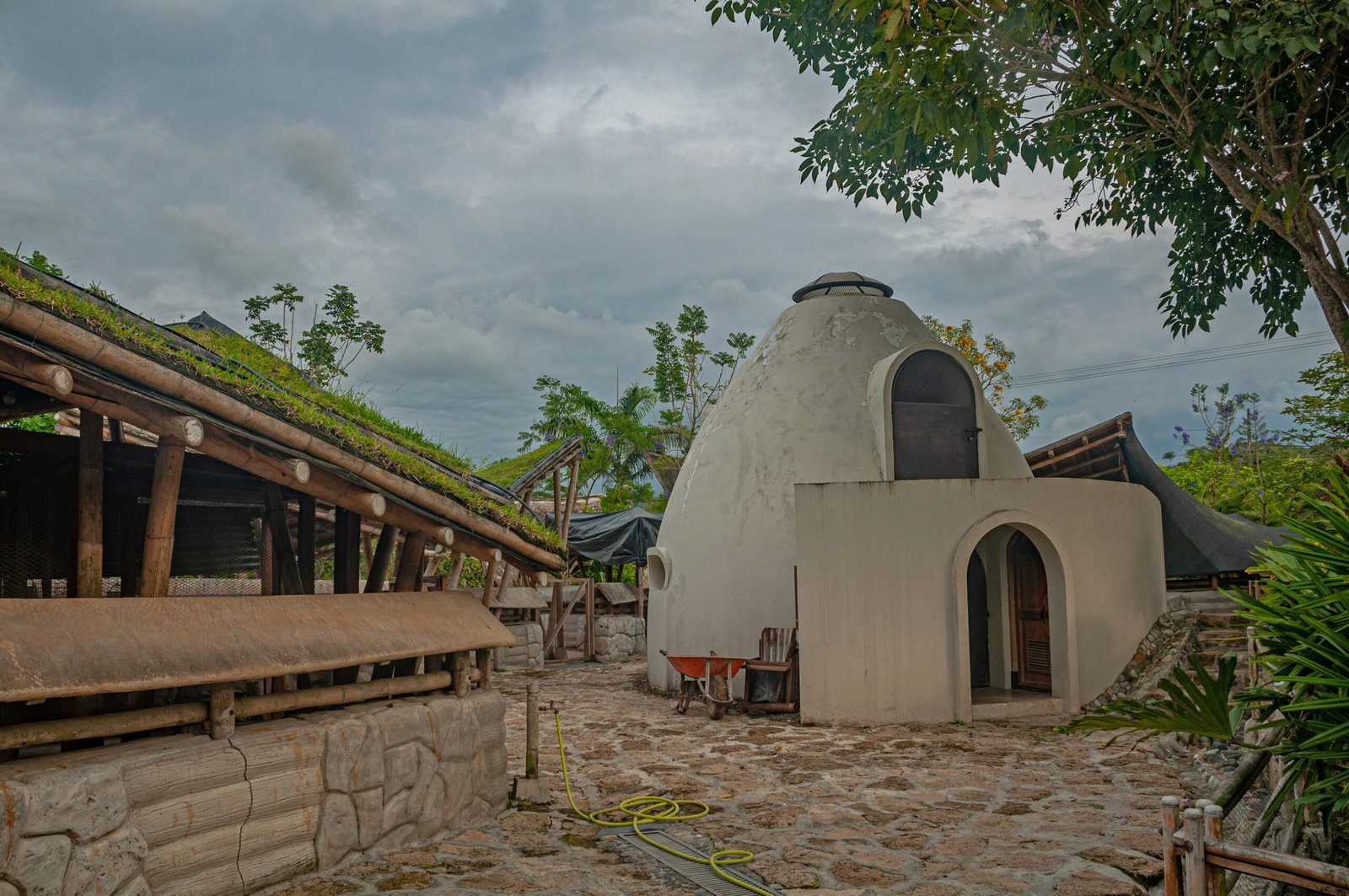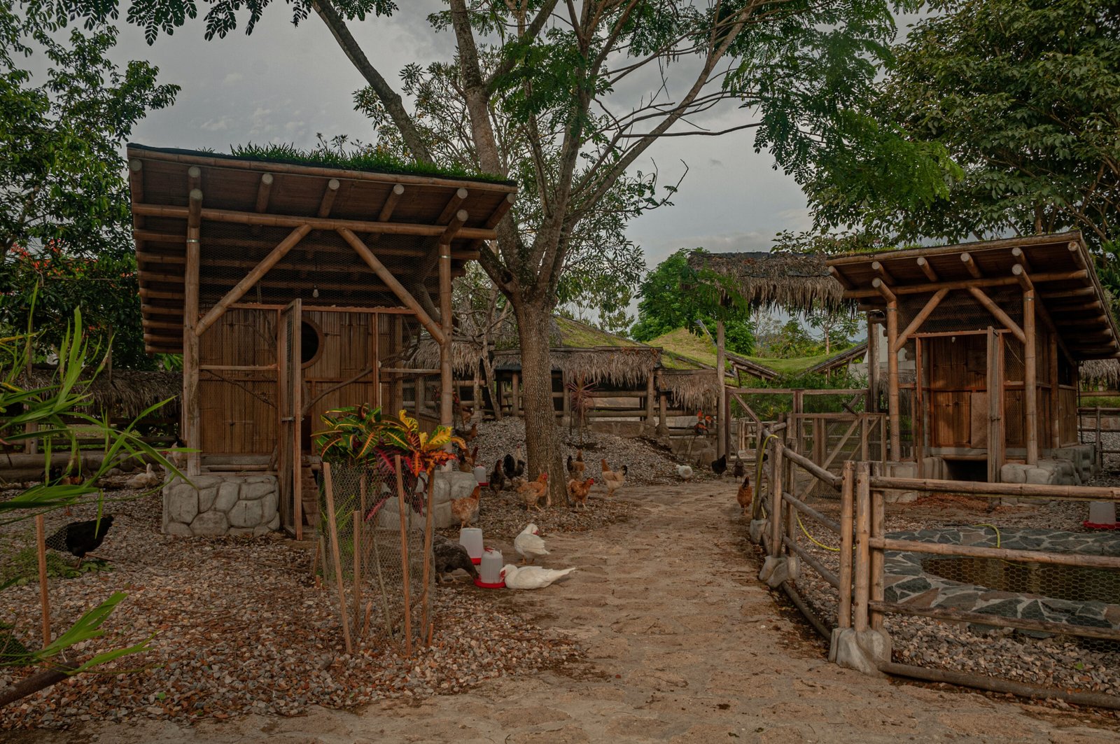 Las construcciones dentro del rancho están hechas con materiales naturales y sostenibles como caña, madera y superadobe. Además, incorporamos un biodigestor conectado a los pits de los distintos animales, el cual recolecta materia orgánica mediante un sistema de tuberías. Este sistema nos permite obtener dos valiosos subproductos: gas metano y biol.