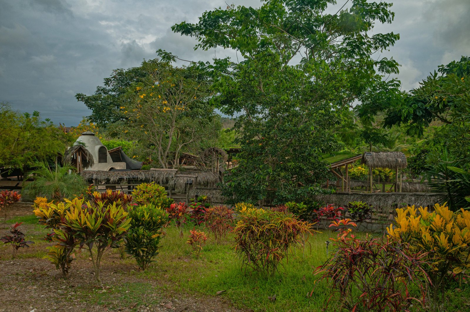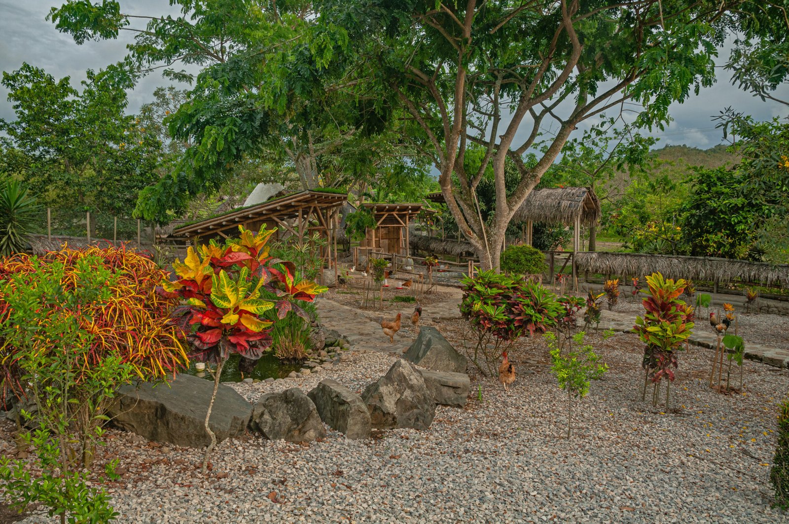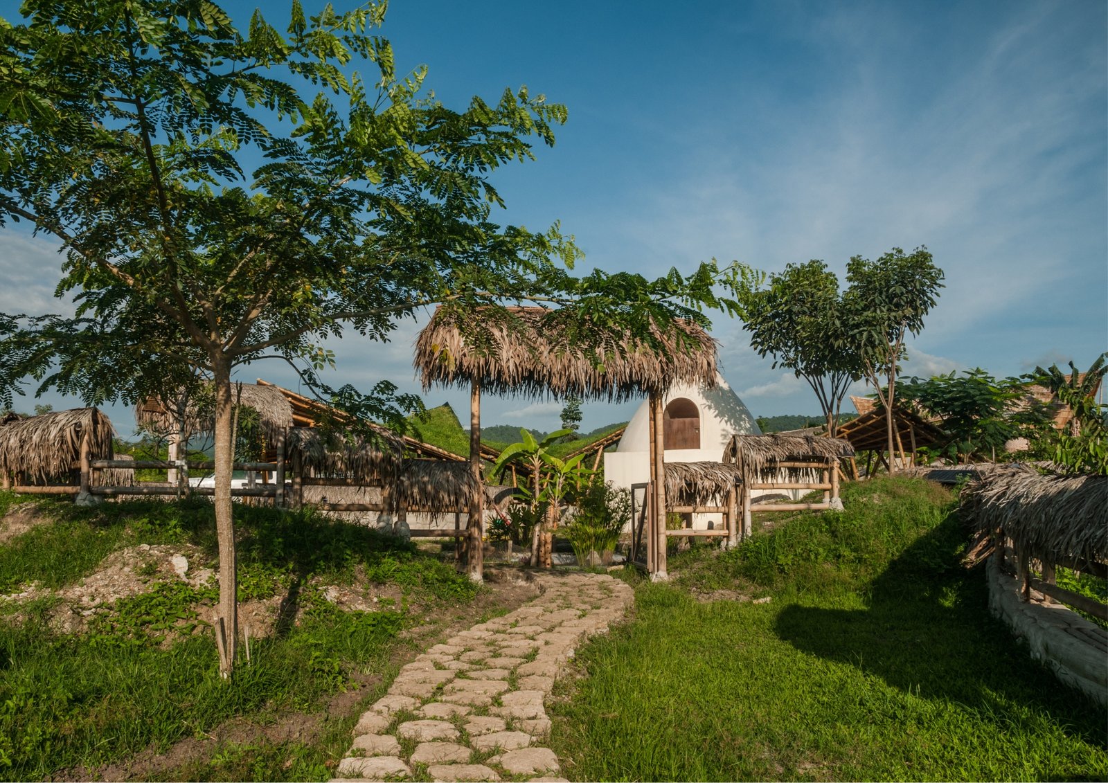 Las construcciones dentro del rancho están hechas con materiales naturales y sostenibles como caña, madera y superadobe. Además, incorporamos un biodigestor conectado a los pits de los distintos animales, el cual recolecta materia orgánica mediante un sistema de tuberías. Este sistema nos permite obtener dos valiosos subproductos: gas metano y biol.