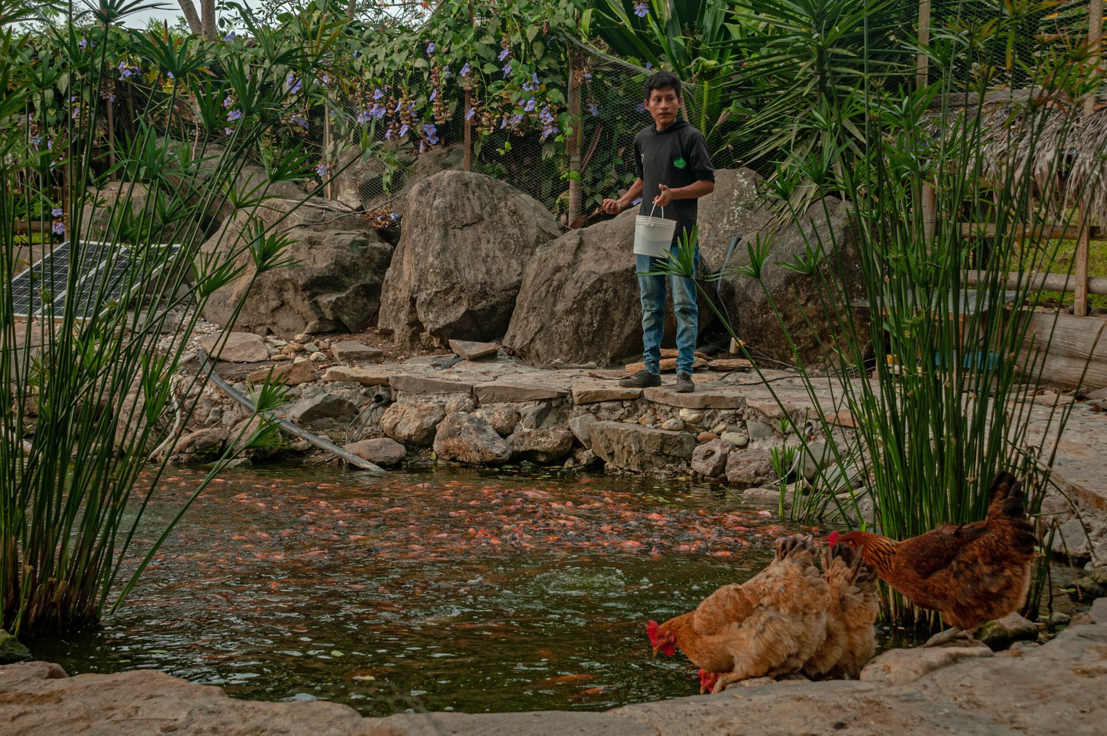 Este proyecto tiene como prioridad el bienestar animal. En la finca habitan burros, conejos, cuyes, codornices, diversas especies de gallinas, tortugas, patos y un estanque con tilapias, todos organizados en espacios separados según sus necesidades.