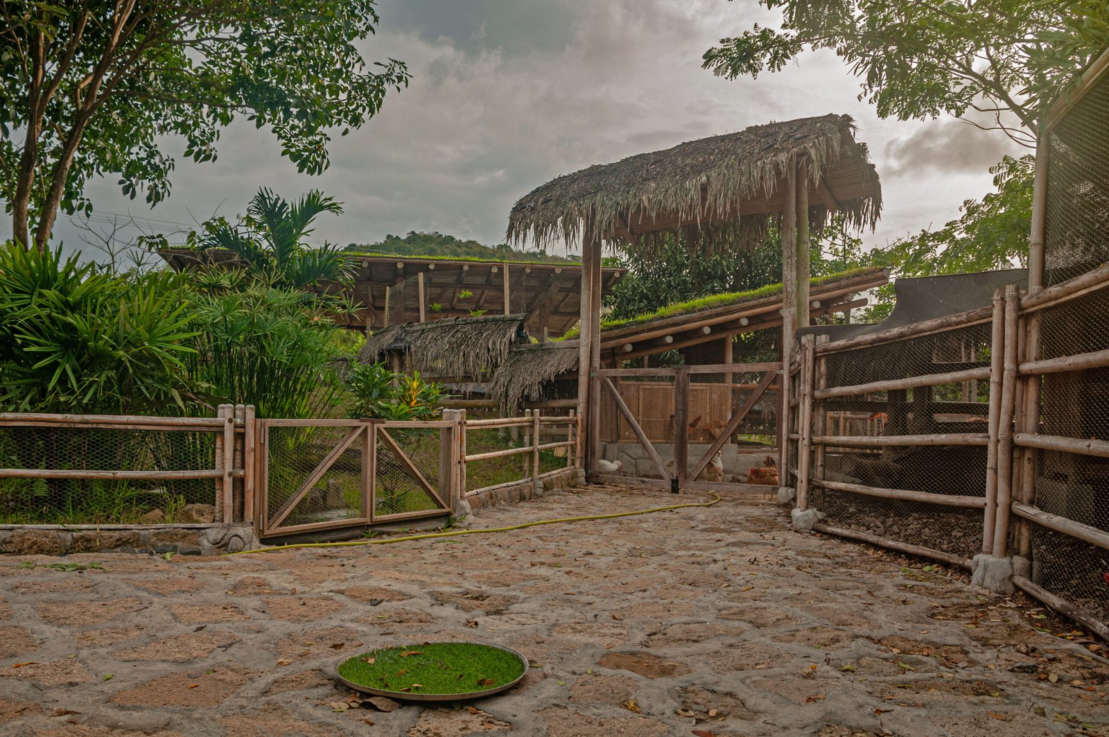 El diseño del refugio animal (animal shelter) se implantó en forma de un “ocho”, dividiendo claramente dos zonas: una de ellas, la más amplia, está destinada a patos, gallinas y peces, promoviendo un sistema de crianza al aire libre.