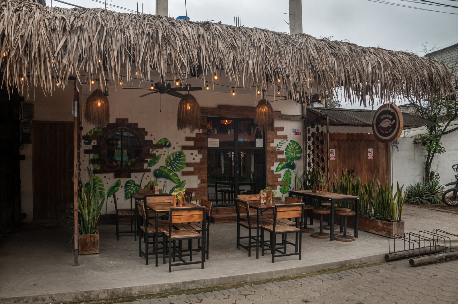 Este proyecto comercial, con un estilo muy característico de nuestro estudio, nos brindó la oportunidad de crear un rincón único en el encantador pueblo de Olón. Desde la cubierta —construida con una mezcla de metal, madera, caña y hojas de palma— hasta los detalles decorativos como la iluminación y los sacos de yute, cada elemento fue pensado para transmitir una experiencia acogedora y auténtica.