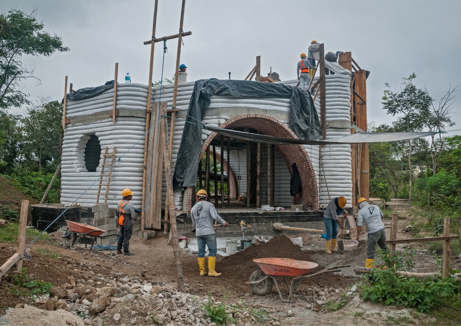 En nuestro proyecto aplicamos una técnica que no solo es pionera en el país, sino que también se alinea con una visión profunda de sostenibilidad y conexión con la tierra. Se trata del superadobe, un sistema constructivo desarrollado por el arquitecto Nader Khalili, reconocido por su trabajo con la NASA y por proponer soluciones habitacionales resilientes, económicas y armónicas con el entorno.
